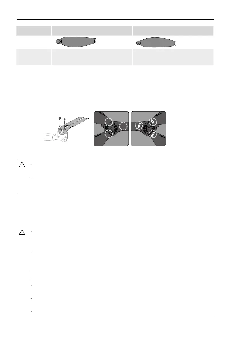 Make sure all propellers are in good condition before each ight. DO NOT use aged, chipped, or