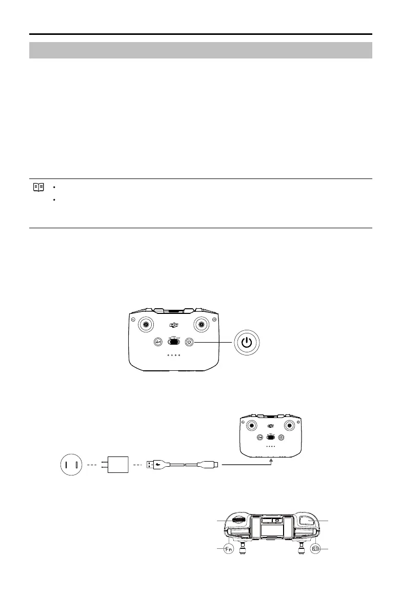 Use a USB-C cable to connect a USB charger to the USB-C port of the remote controller.