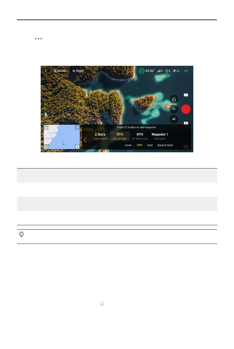 • Using the Remote Controller: Press once on the Fn button (RC-N2) or the C1 button (DJI
