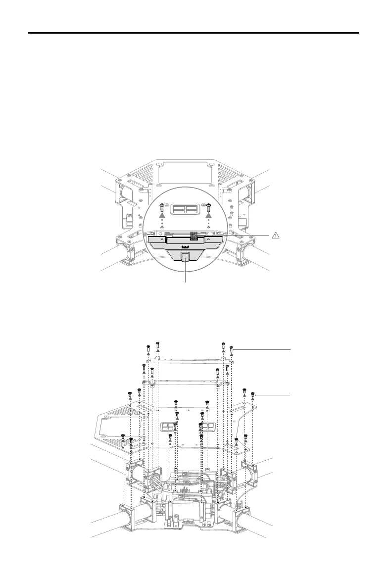 2. Remove the 16 screws (M2.5x5) on the upper plate of the center frame, and the eight screws