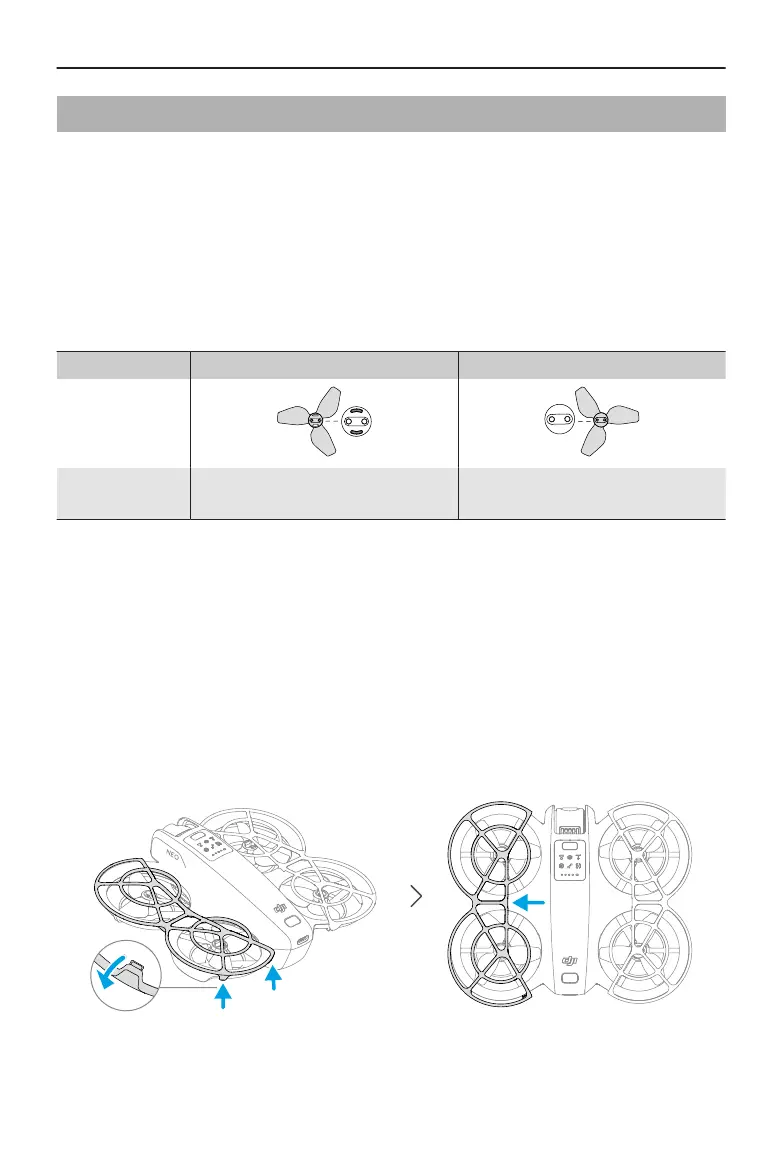 Make sure that DJI Neo is powered o. Remove the propeller guards by following the