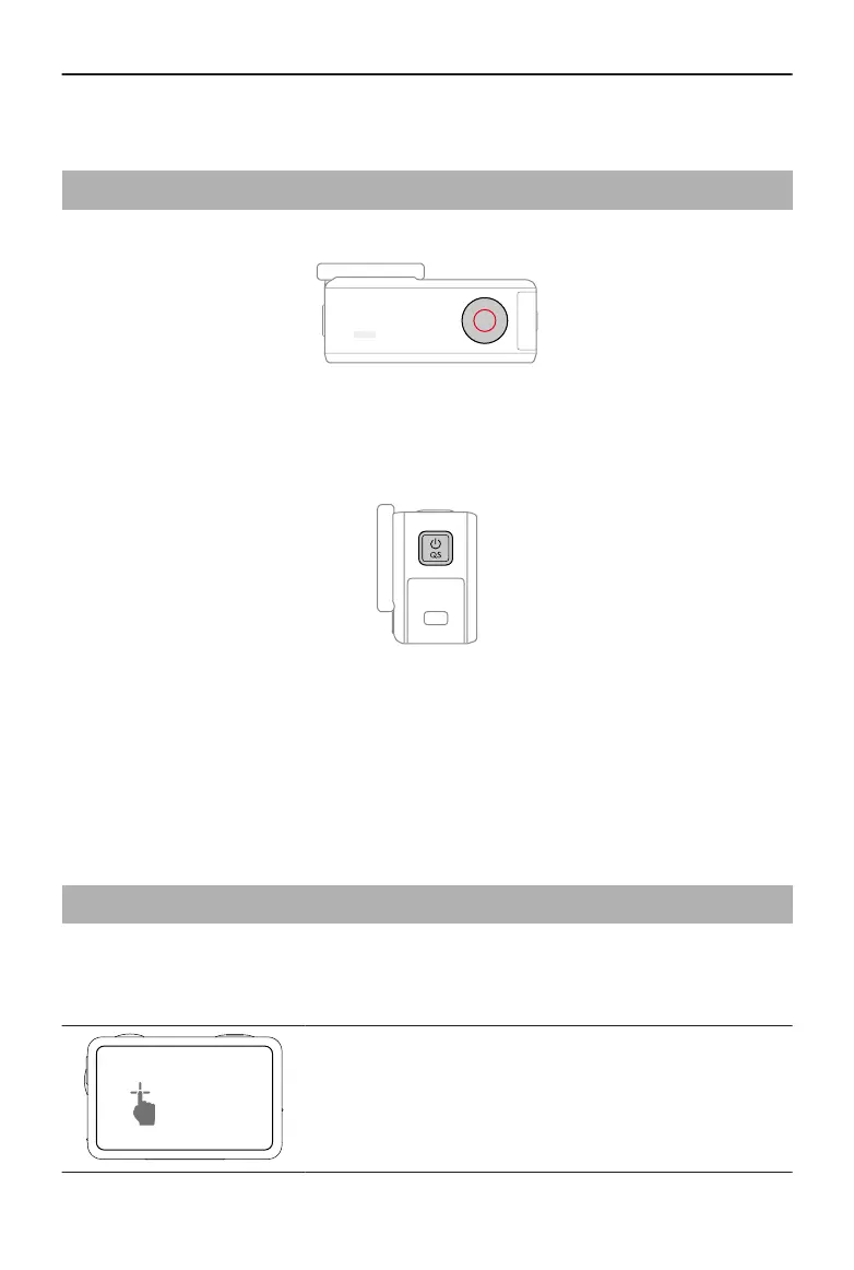 • Press and hold when powered o: Power on quickly and begin shooting. The