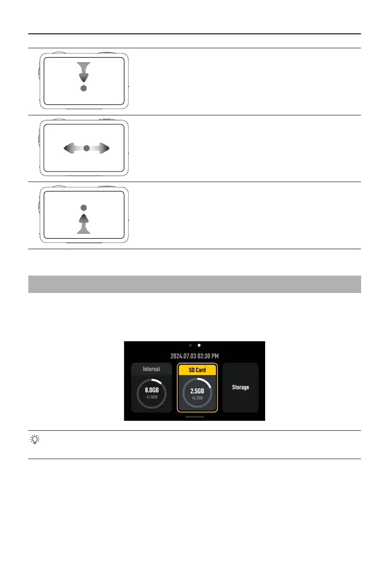 Swipe down from the top of the screen, and then swipe left to check the storage