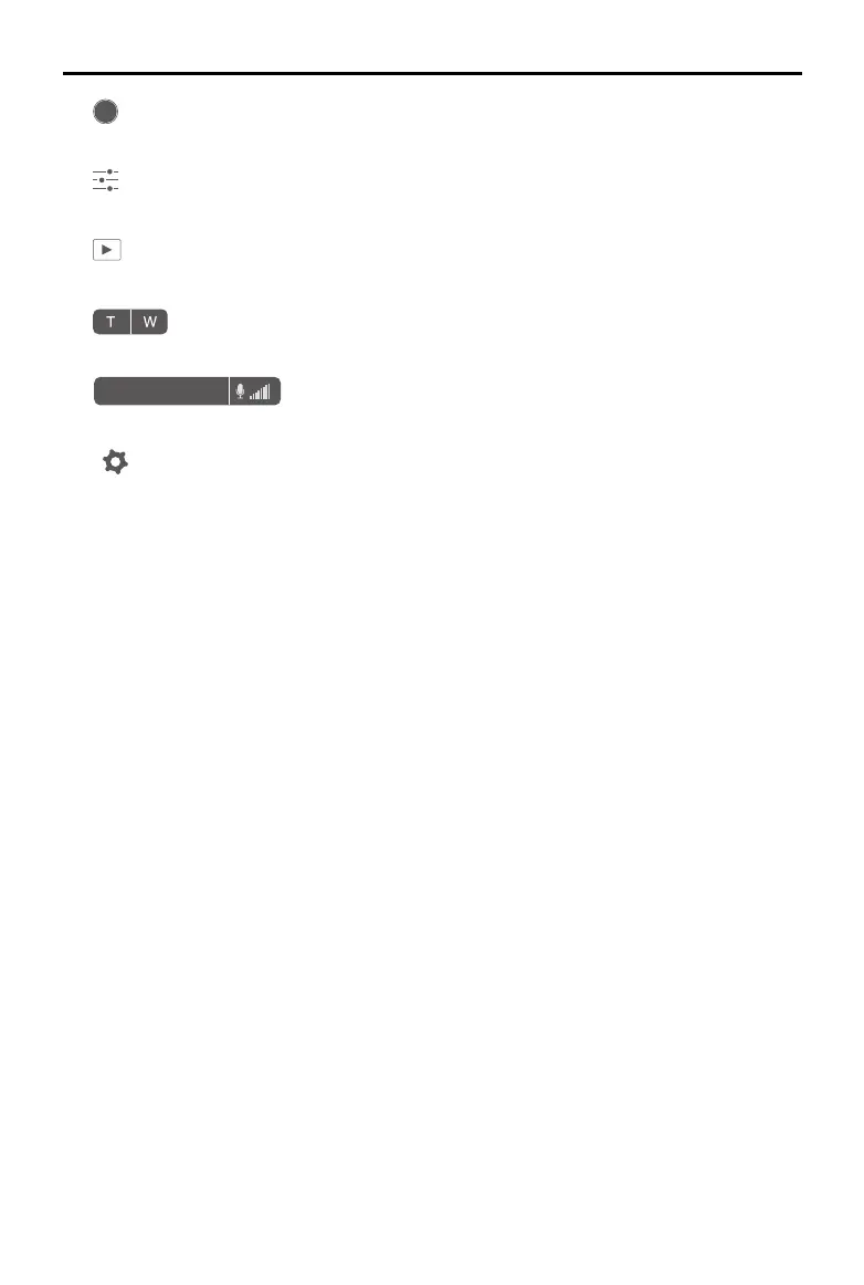 Displays the current recording time, remaining recording time and microphone volume.