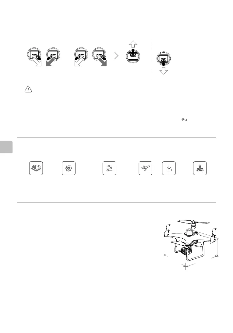no DJI GS Pro. Para diminuir o risco de danos ou ferimentos, só interrompa os motores em pleno voo em
