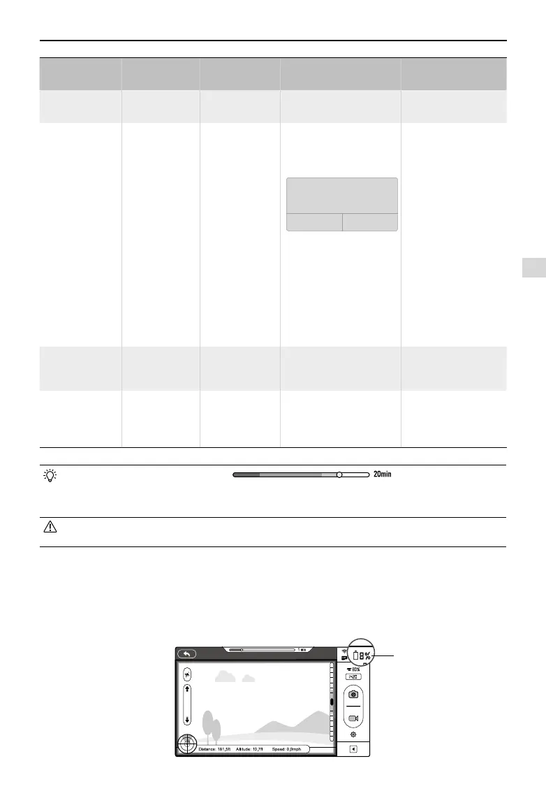 Battery level warnings will show on the camera page of the DJI VISION App when the battery level is low.