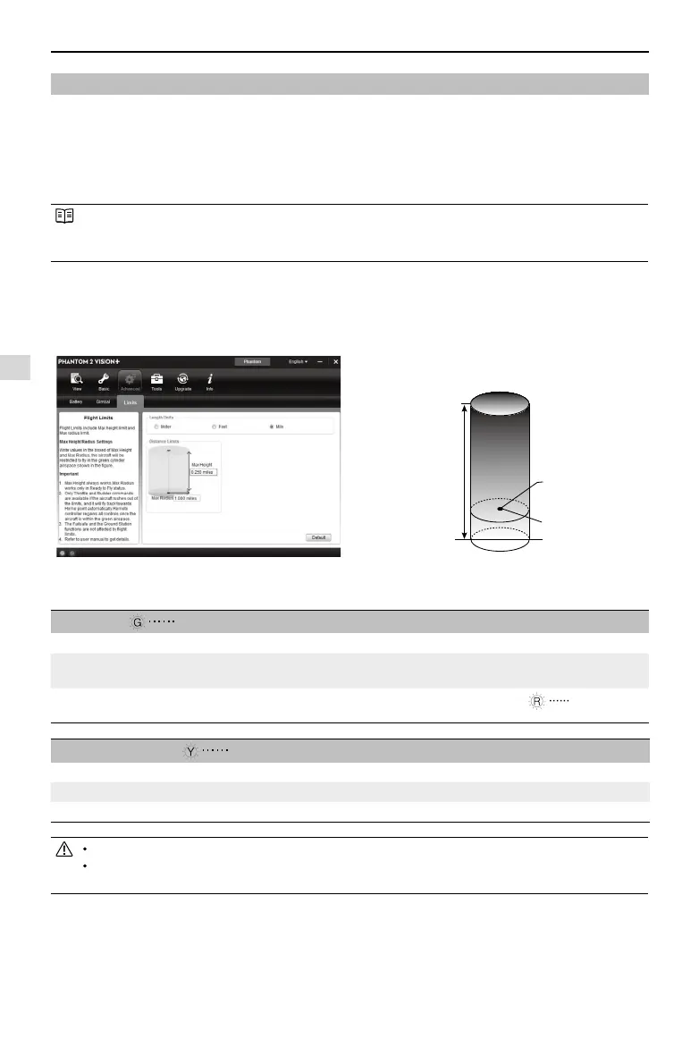 Max Height & Radius limits ying height and distance. Conguration can be done in the Phantom 2 Vision+ Assistant