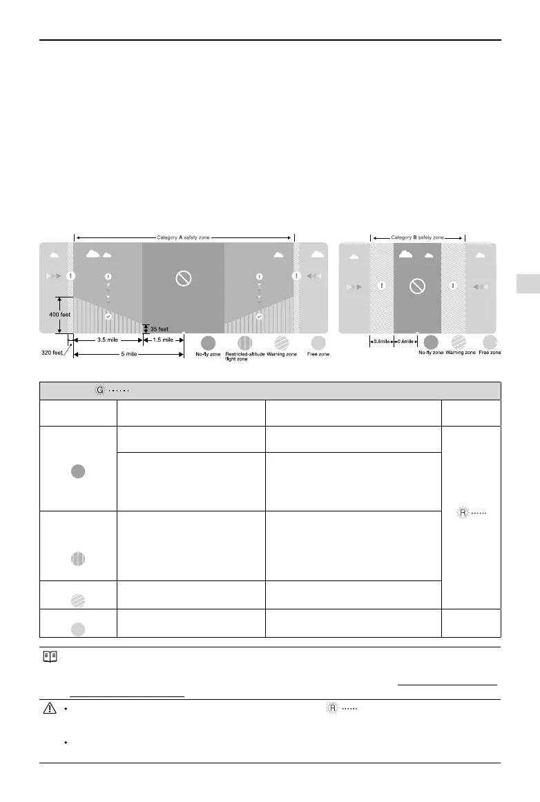(3) A “warning zone” has been set around the safety zone. When you y within 0.6 miles (1Km) of this zone, a warning