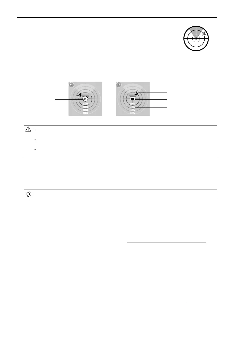 By default, the center of the radar indicates the home point recorded by the Phantom 2 Vision+. Tap the