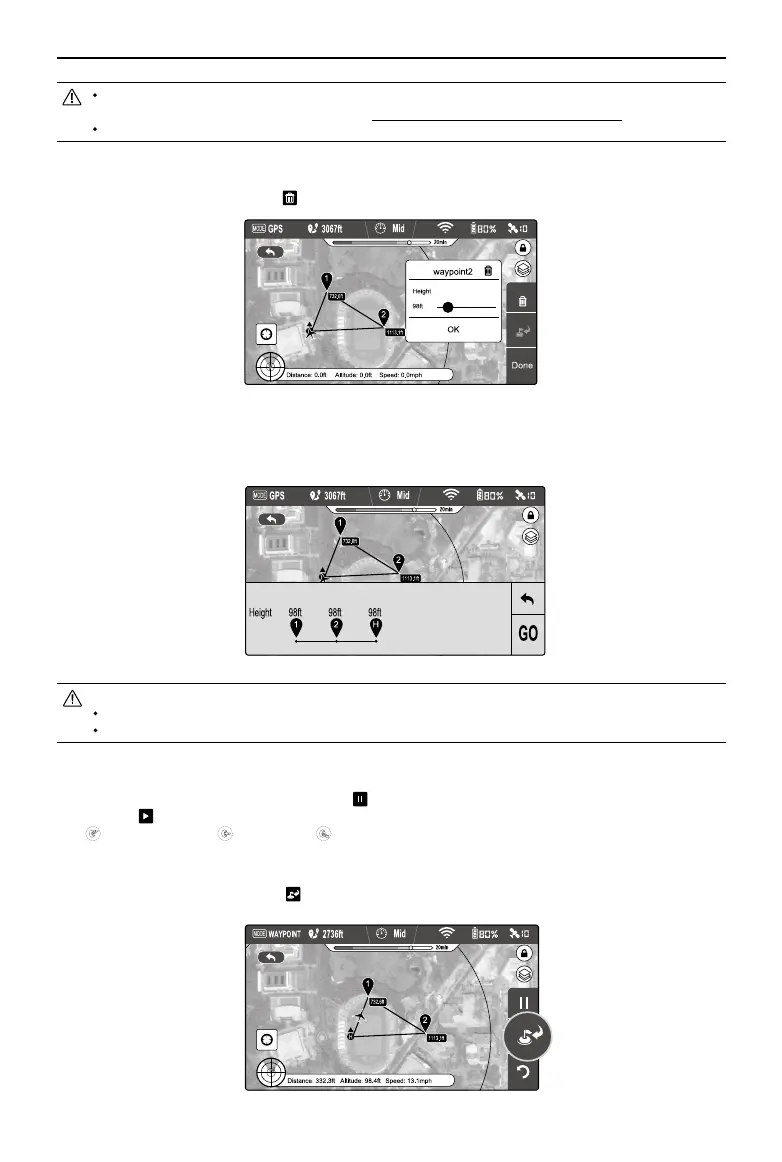 between waypoints, the aircraft will adjust its altitude as it ies between points. When ready, tap “GO” to begin mission.