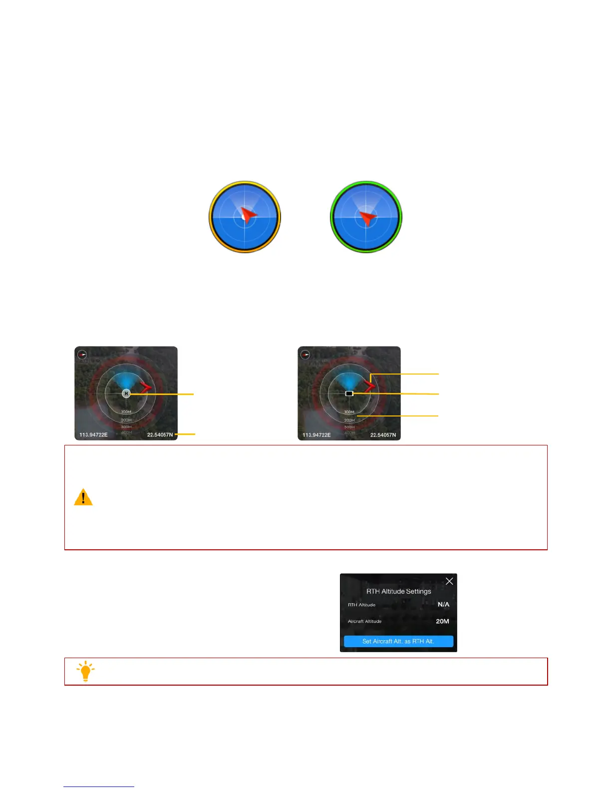 (4) An orange circle around the radar indicates that the dynamic home point is not available.