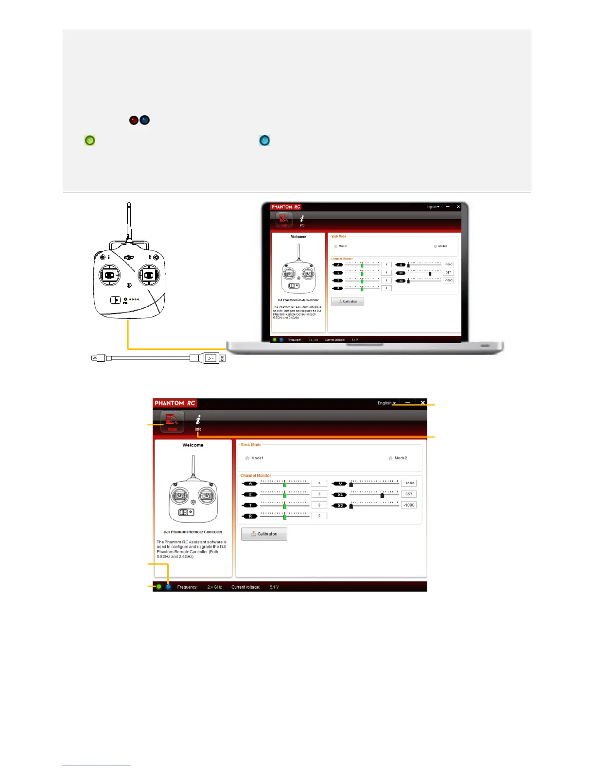3. Run the PHANTOM RC Assistant and wait for the remote control to connect to the Assistant. Observe the