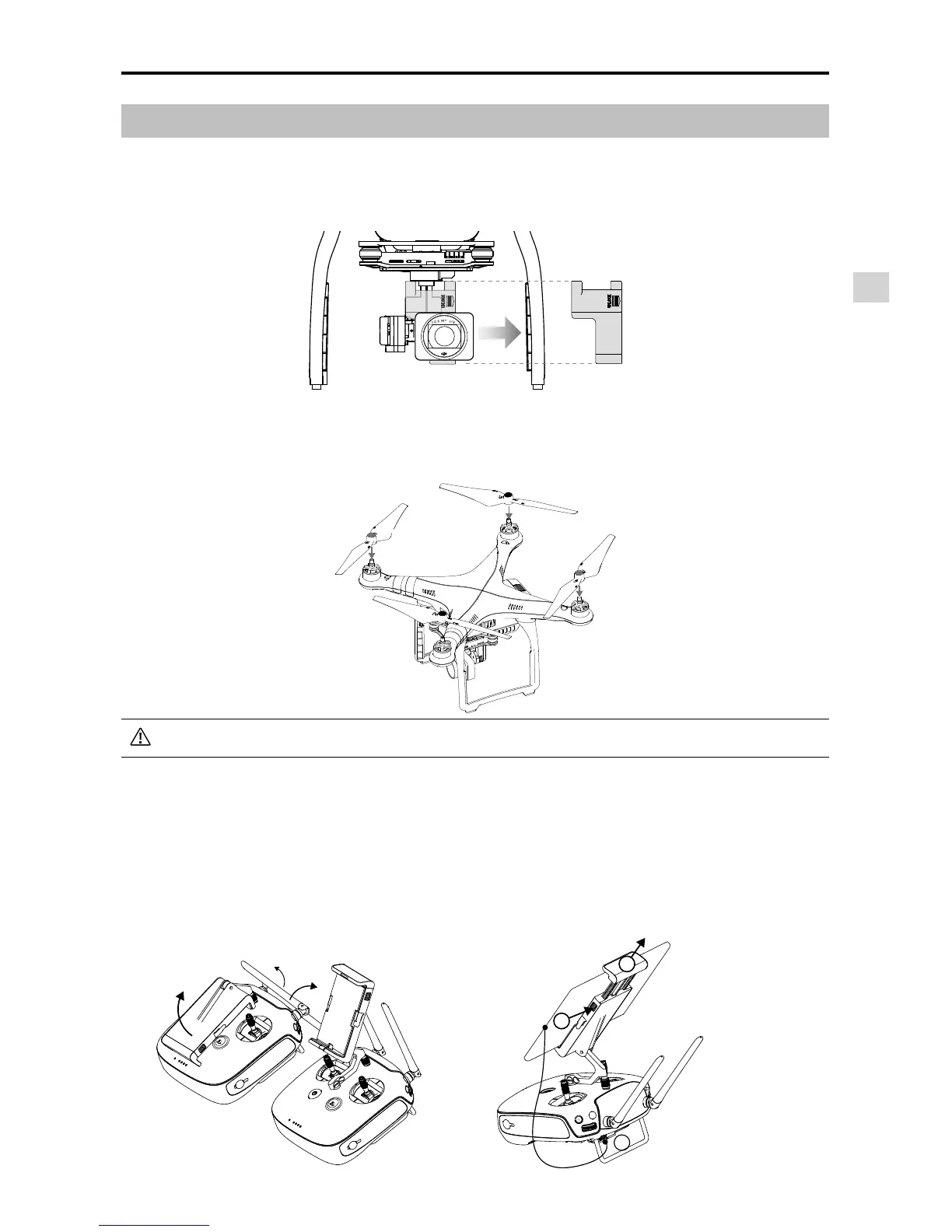 Mount the propellers with grey nuts on to motors with gray axes and spin clockwise to secure. Be sure all