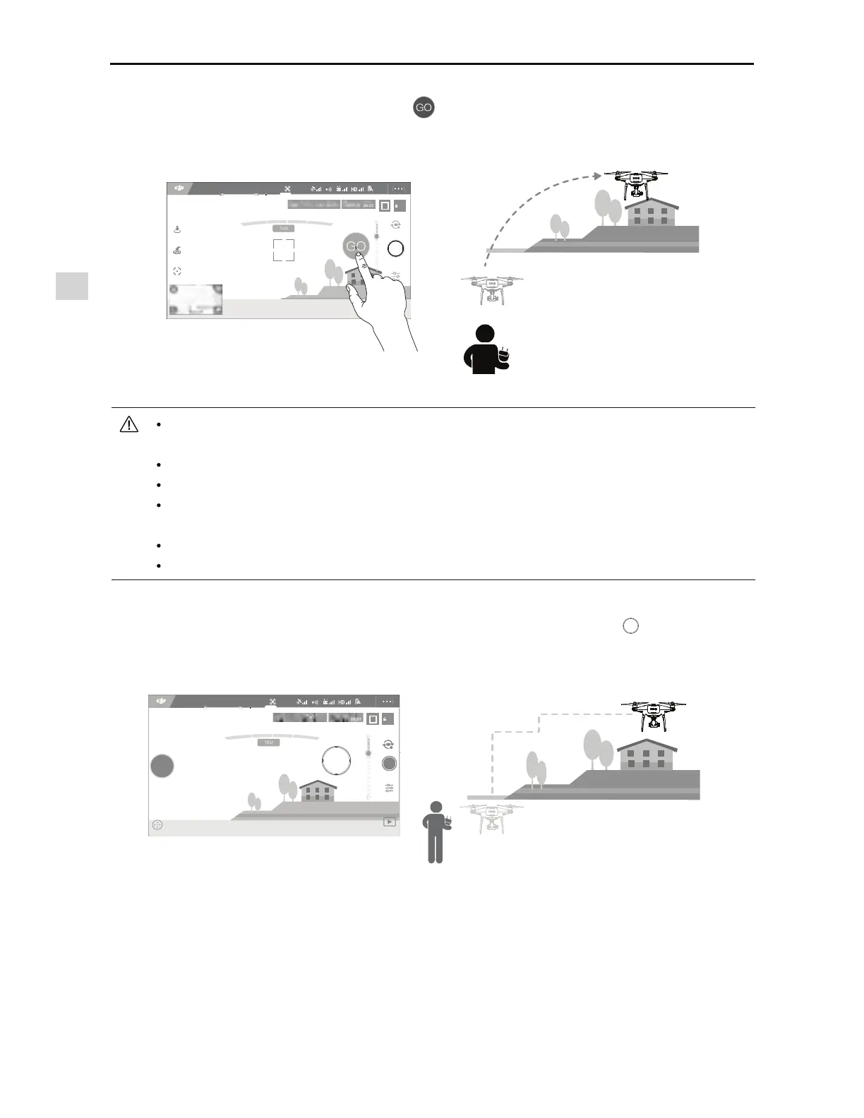 DO NOT guide the aircraft to fly towards people, animals, small and fine objects (e.g. tree