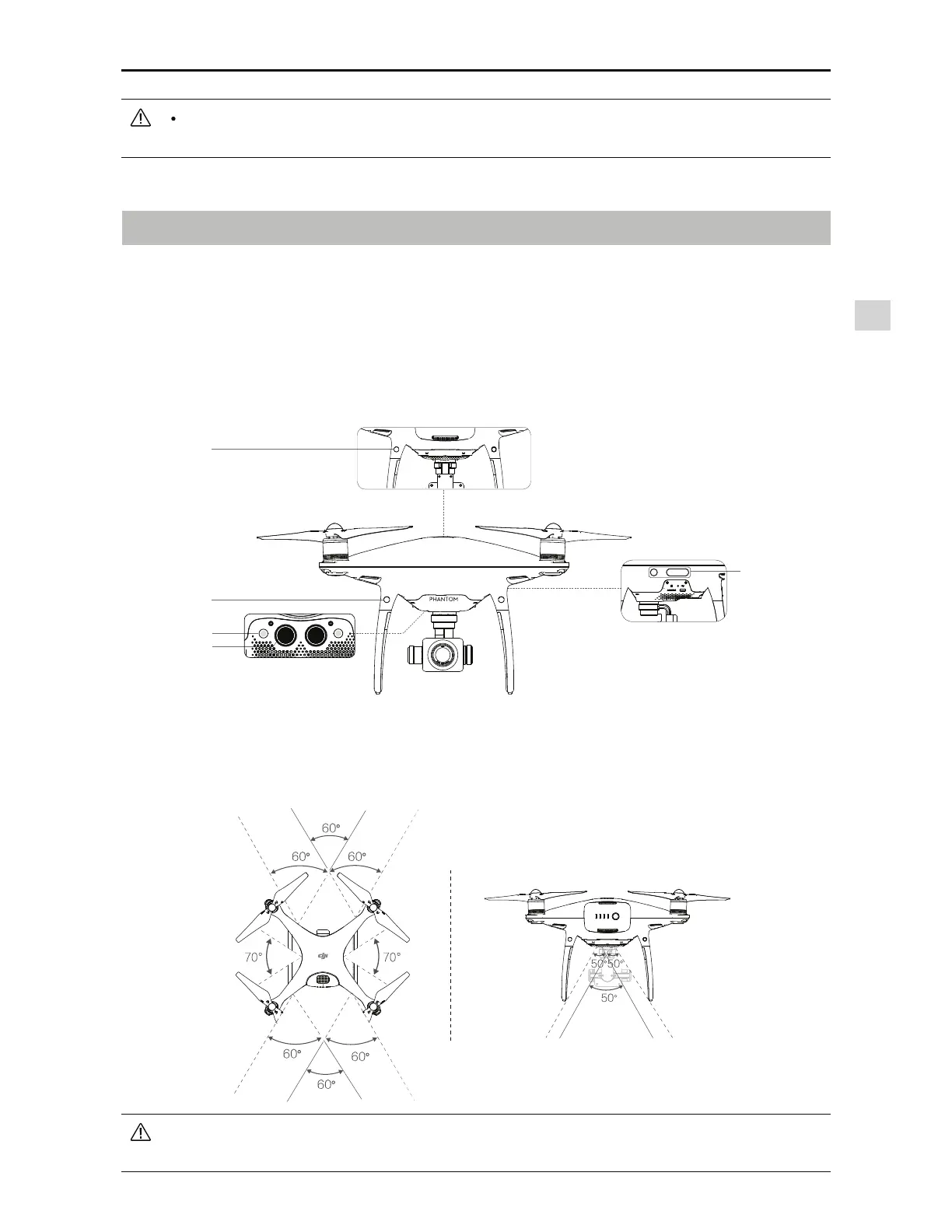 The main components of the Vision System are located on the front, rear and bottom of the Phantom 4