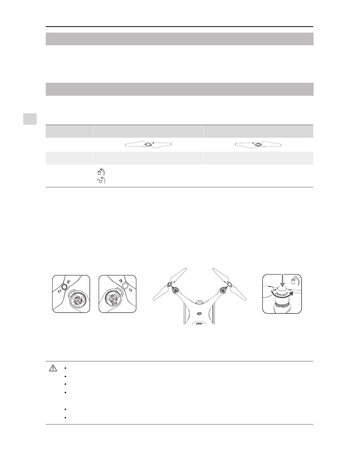 Lock : Turn the propellers in the indicated direction to mount and tighten.