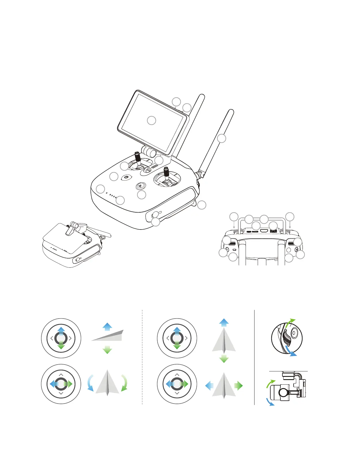 stick controls its forward, backward, left and right movements. The gimbal dial controls the camera’s tilt.