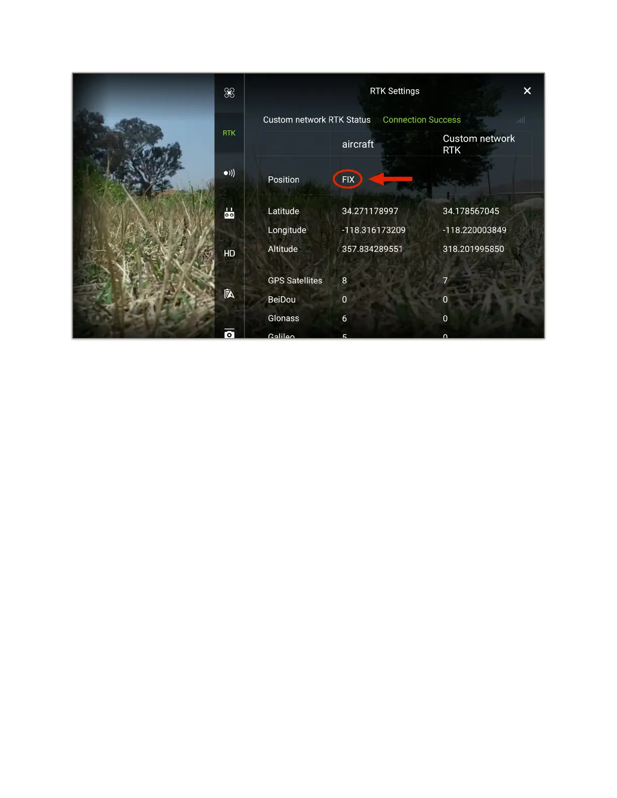 Network RTK is now connected, and the Phantom 4 RTK should be ready for operation.