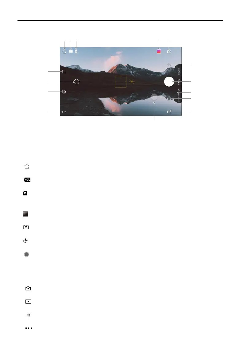 The camera view display may dier depending on the shooting mode. This display is for reference only.