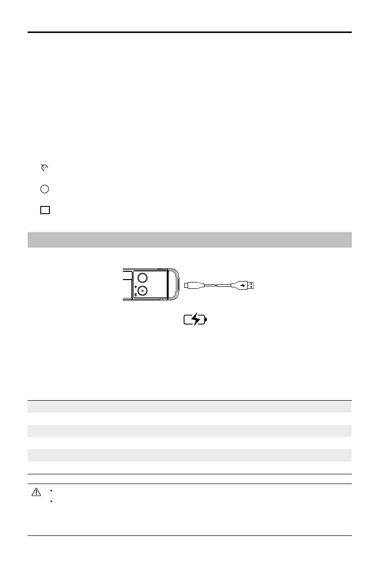 The status LED indicates the battery level during charging. Refer to the table below for more information.