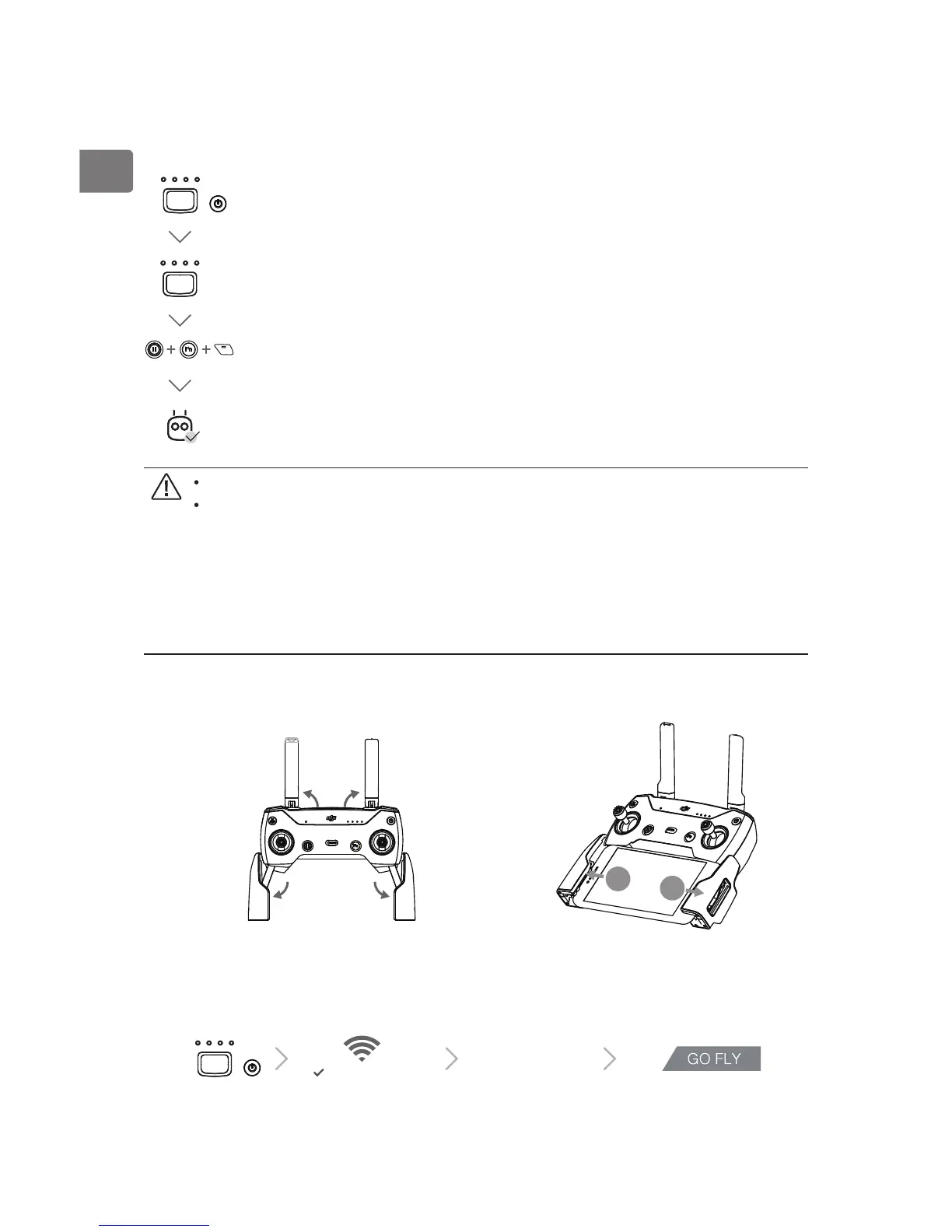 Power on the aircraft and the remote controller. Wait until aircraft status