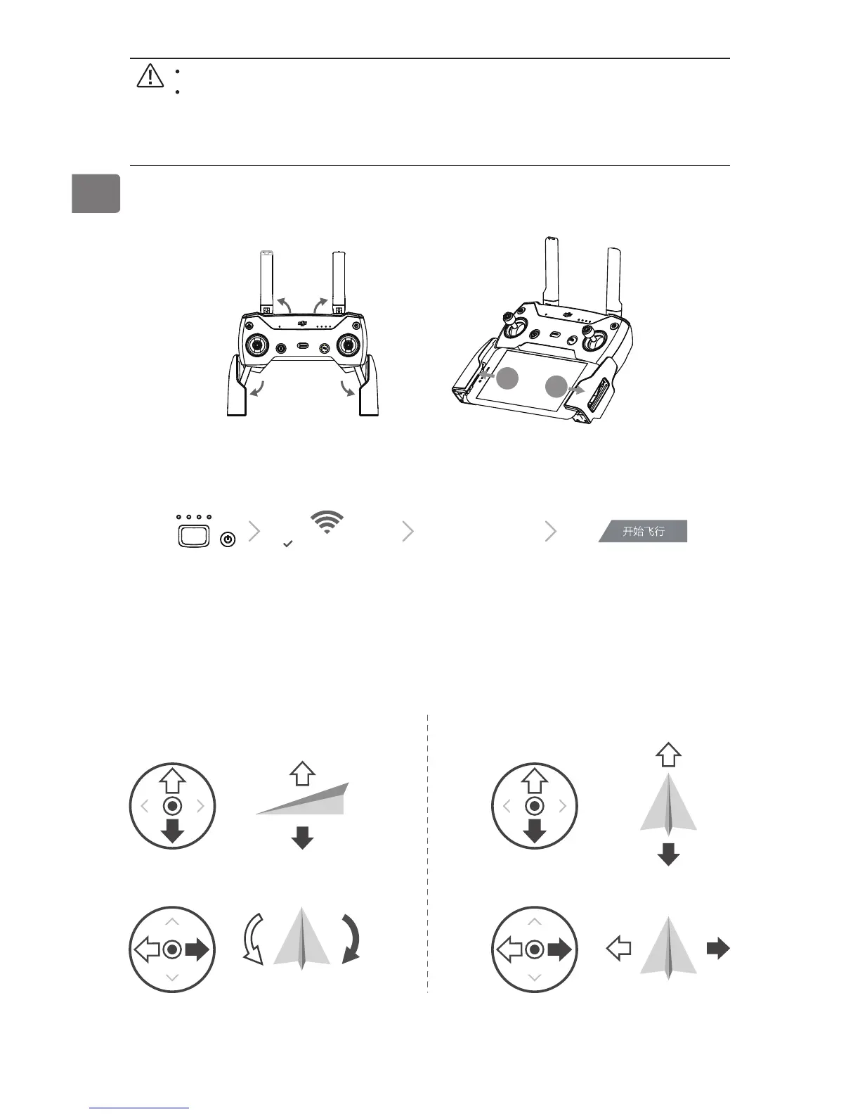 能使用。如需使用移动设备虚拟摇杆功能控制飞行器,请长按智能飞行电池开关