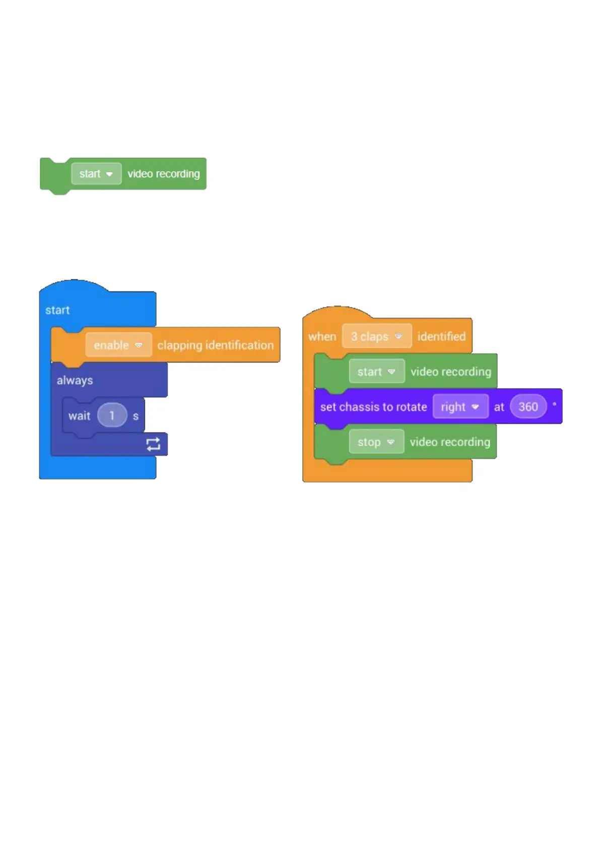 When the robot recognizes three claps, it rotates in a circle to record the surrounding environment video.