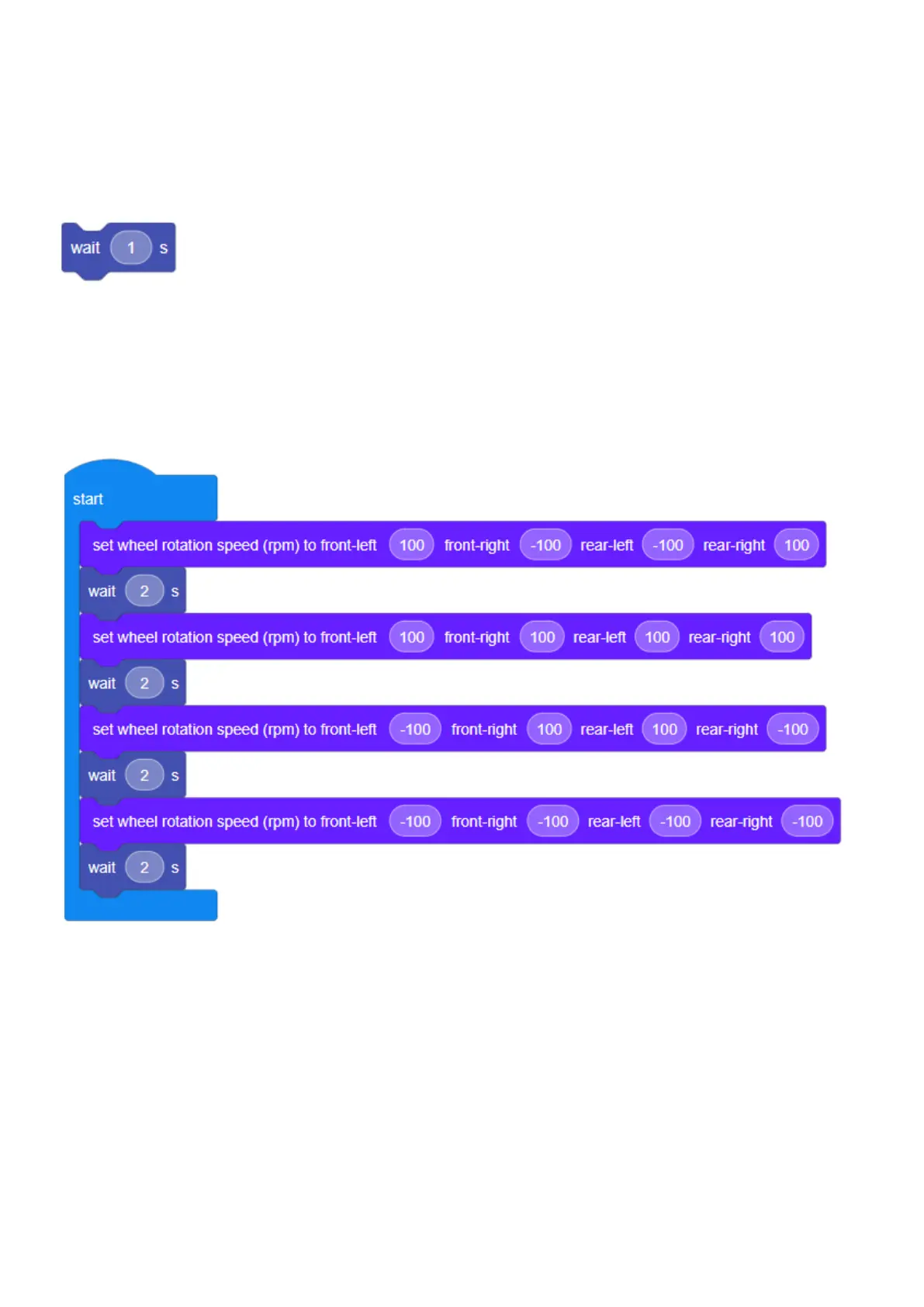This will command the RoboMaster EP CORE to translate in the following order to complete a square every two seconds by