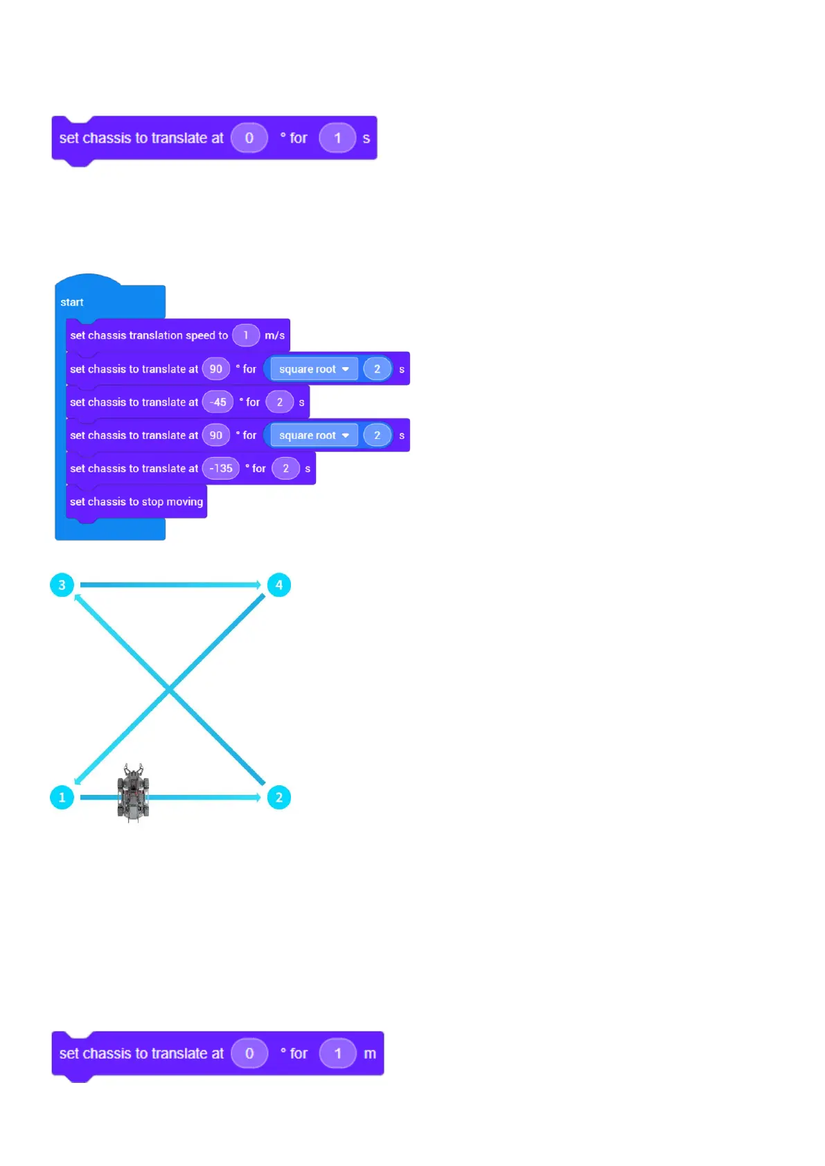 This will control the robot to translate to the “right, forward-left, right, and backward-left” in an X-shaped sequence.
