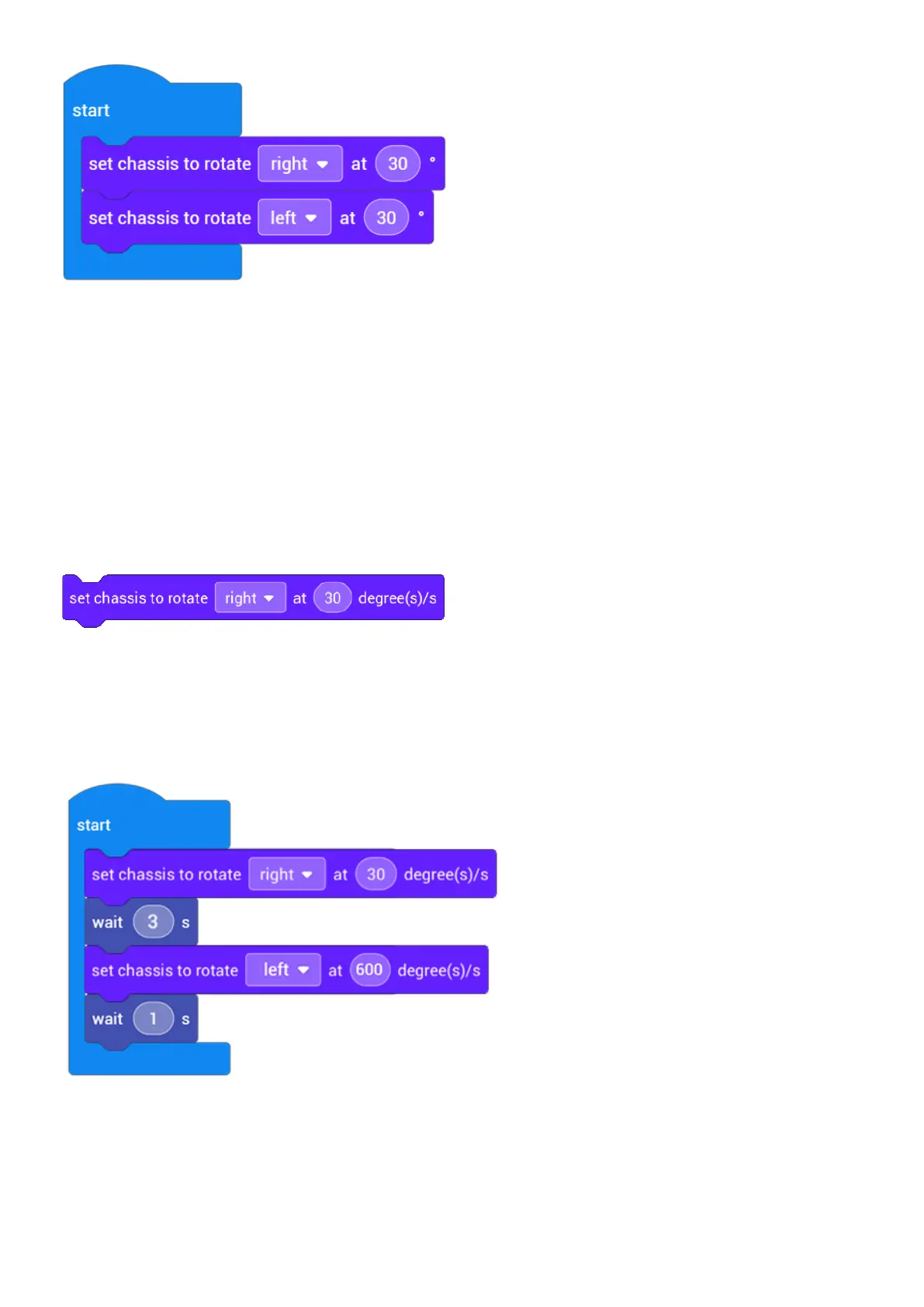 13. Set chassis to rotate (right) at (30)°/s