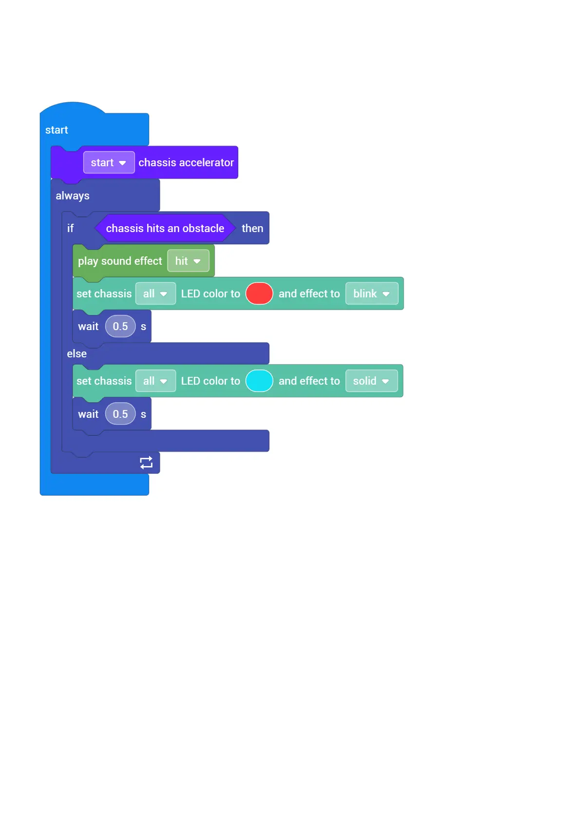 If the chassis impacts an obstacle while the robot is being controlled through the FPV interface, the “hit” sound will play