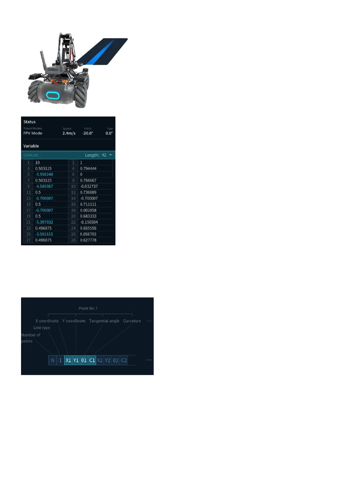 1) The single line information format that is identifiable by the robot is as follows:
