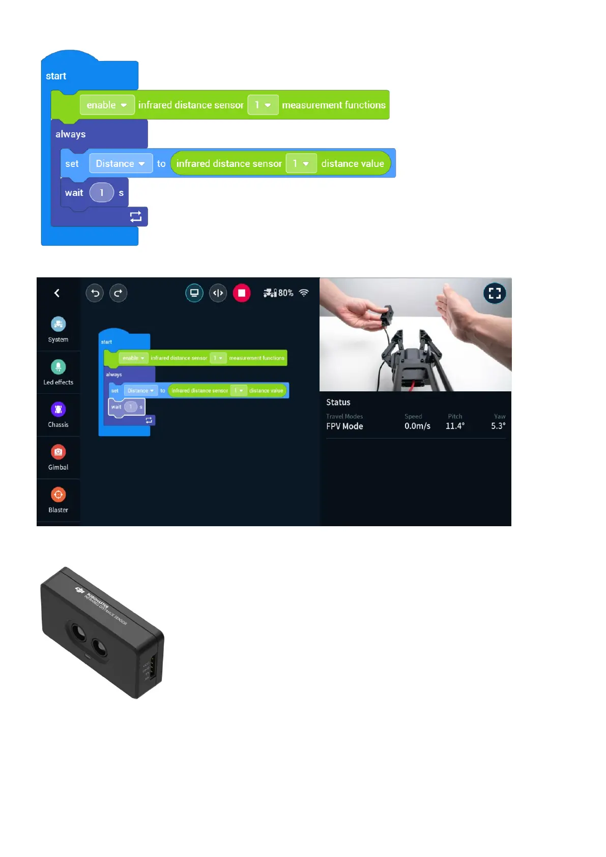 Move your palm forward and backward and observe the real time distance change through the FPV window.