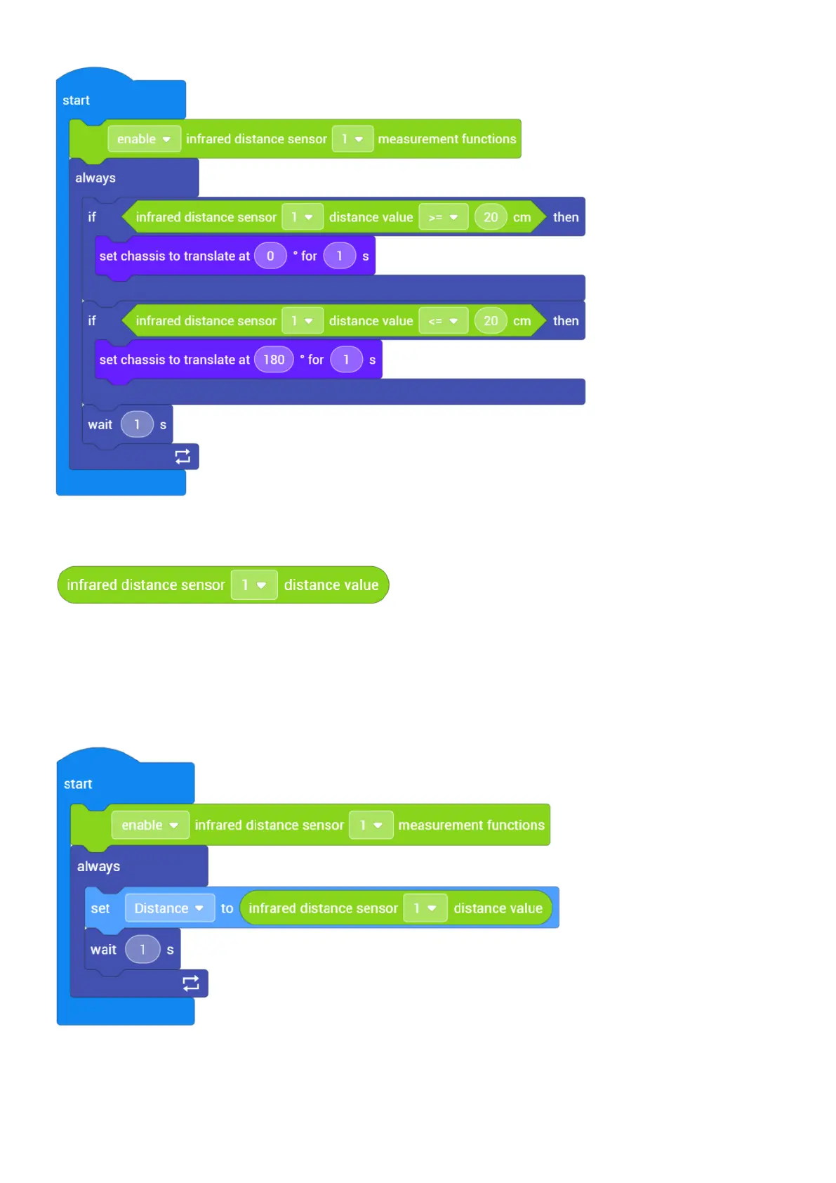(1) Description: Obtain the distance measured by the specified infrared distance sensor (serial No.). The unit is centimeter.
