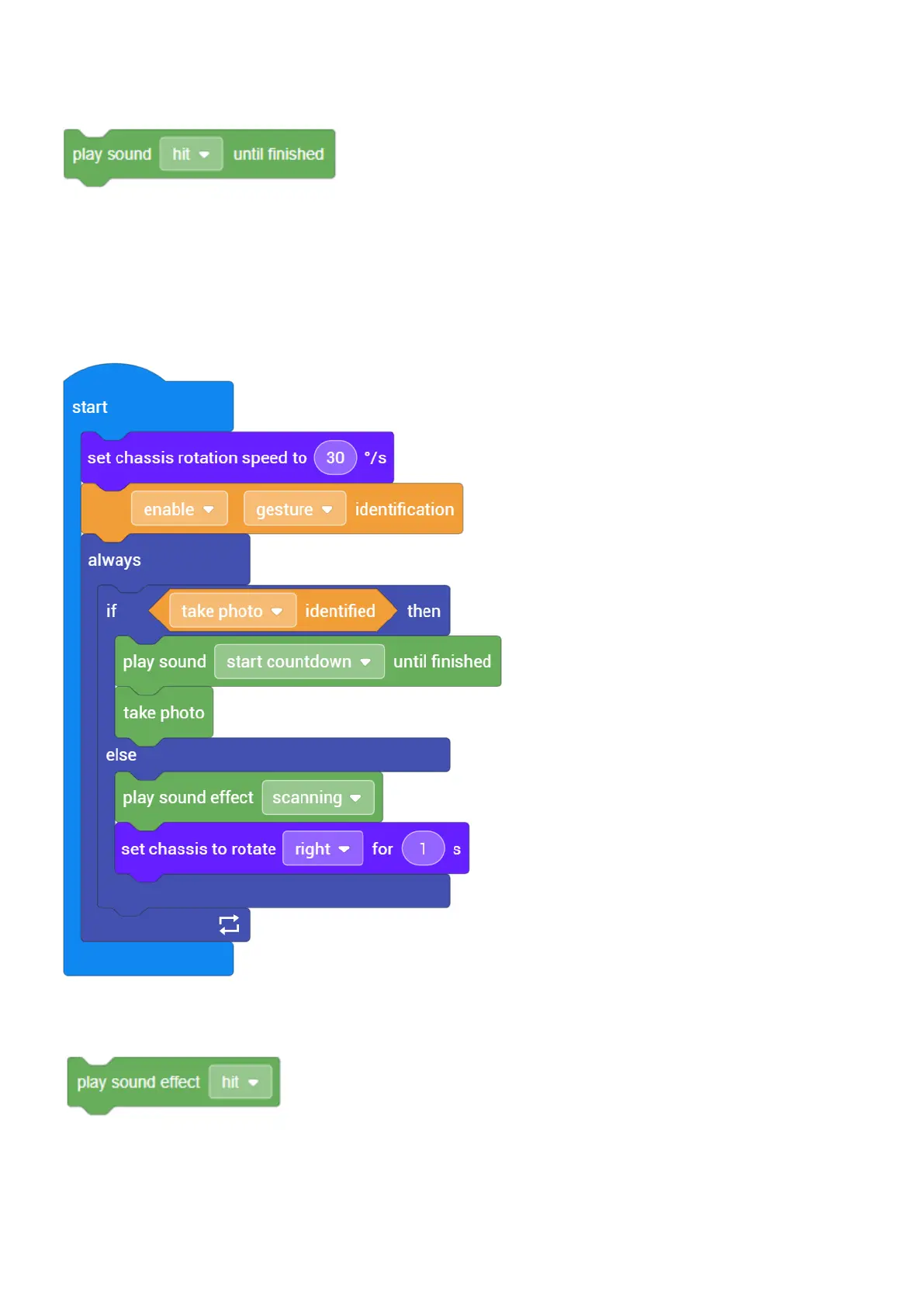 chime. If it does not identify a “take photo” gesture, it will continue to rotate and search for the gesture while playing a