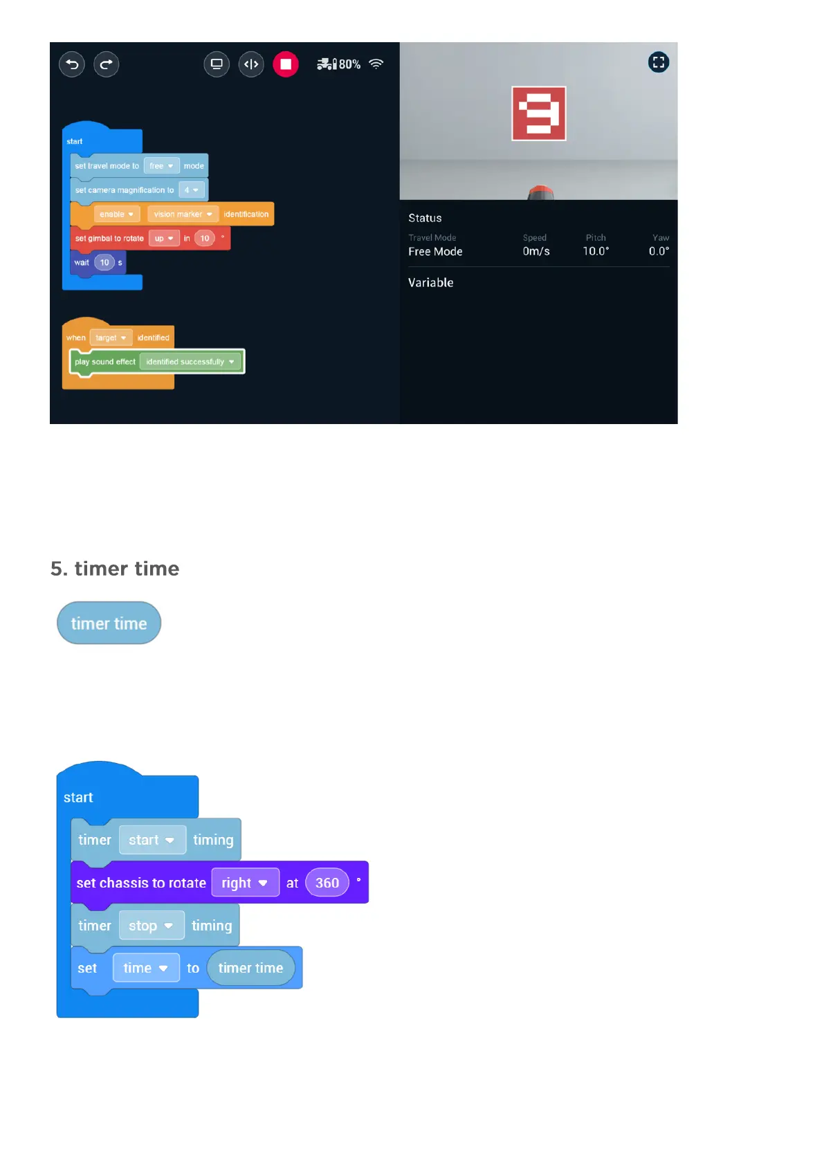 This uses variables to measure the time it takes the chassis to complete one full rotation.