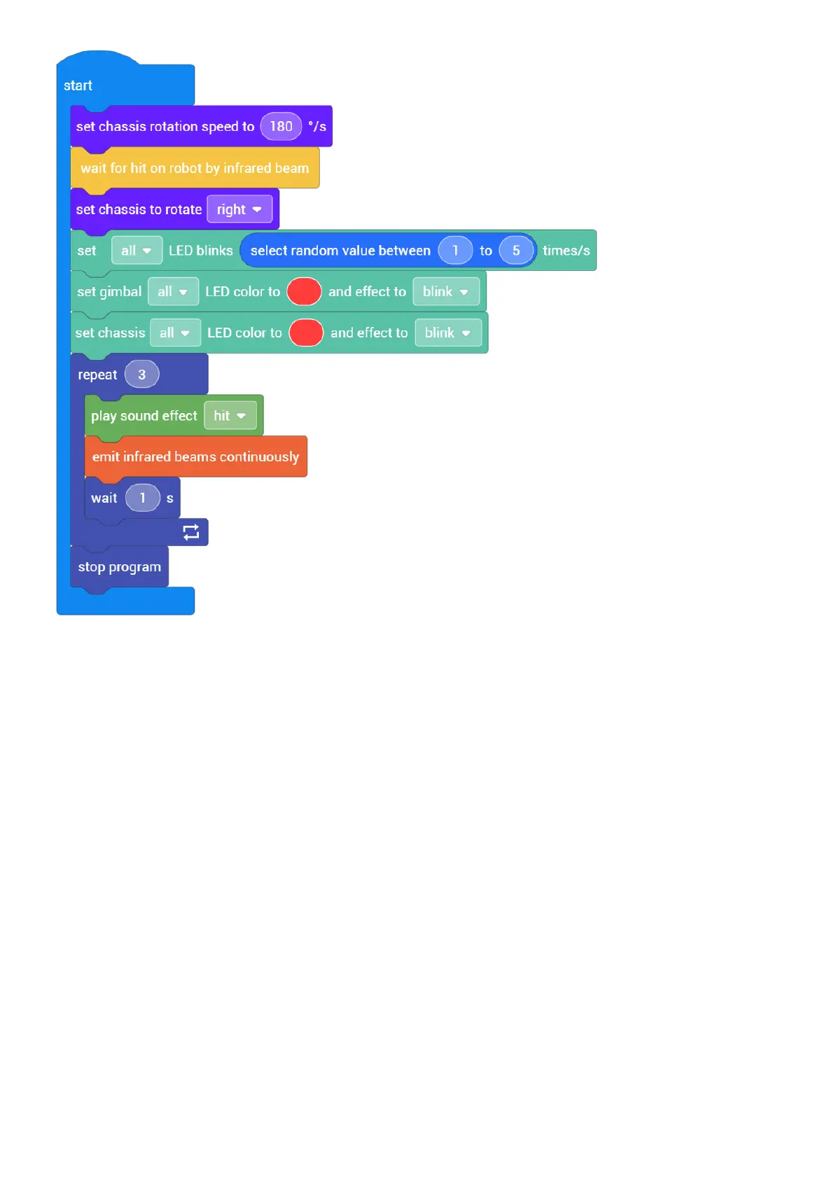 For this function, if no infrared beam attack is detected by the infrared sensor on the robot's gimbal, the