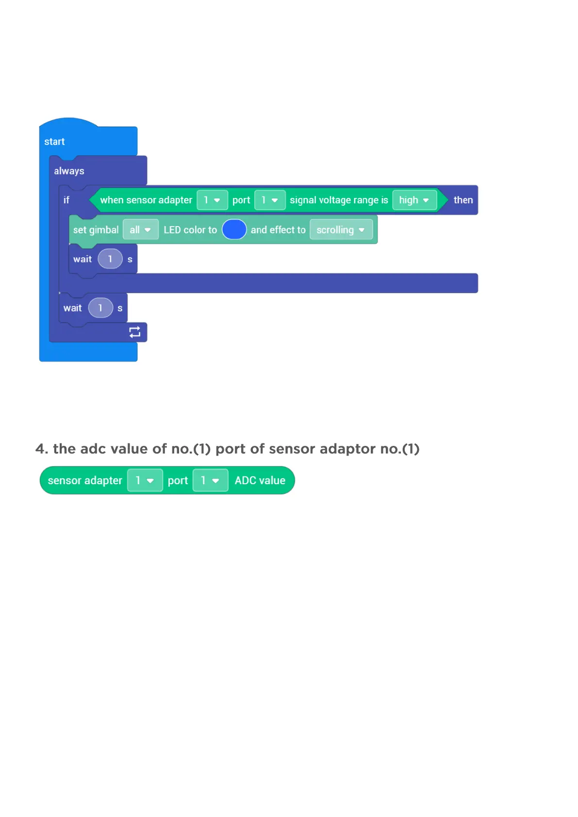 (1) Description: Read the ADC pin value of a specified port of a specified sensor adaptor.