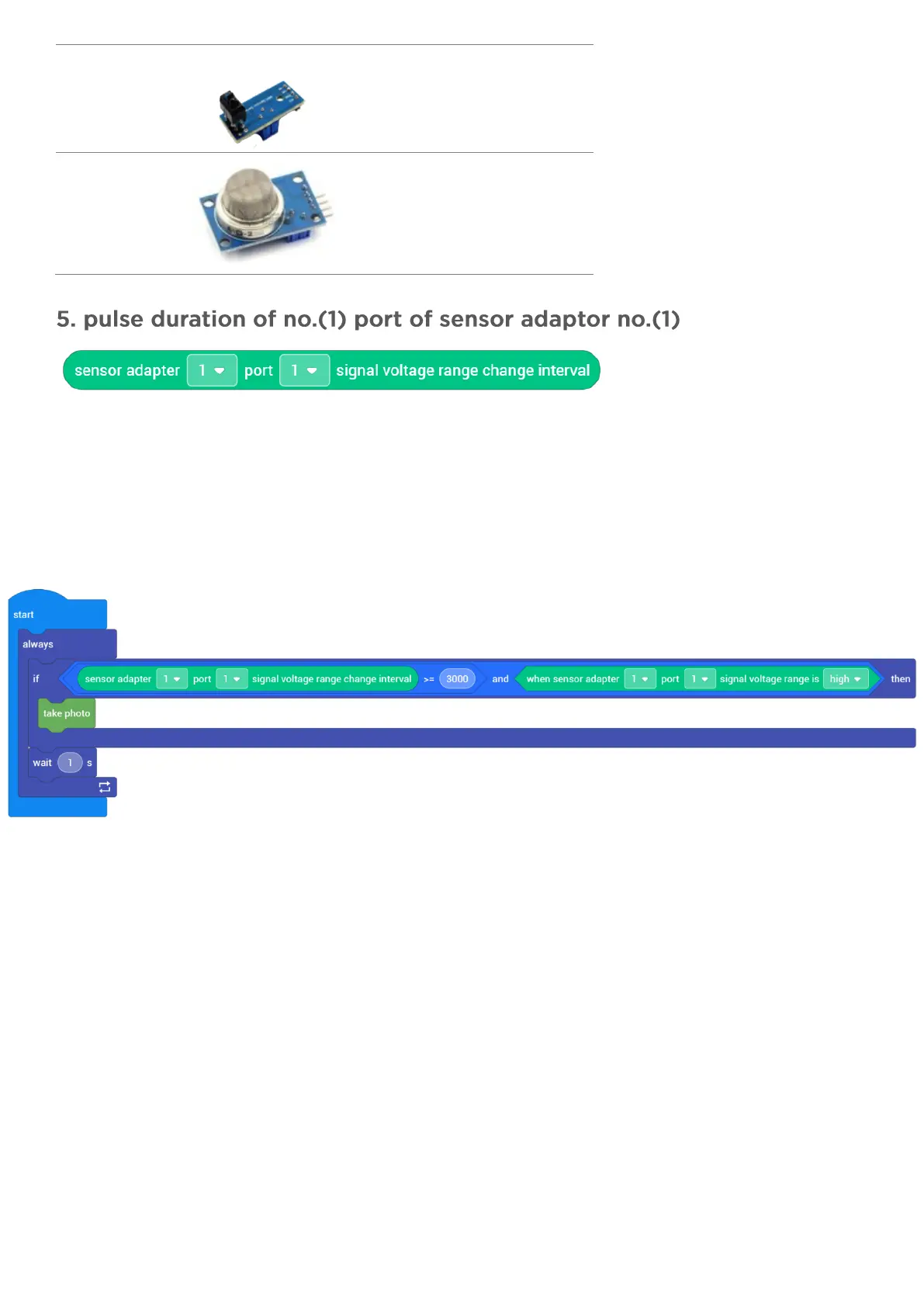 Connect a button to sensor adaptor No.(1). Starts taking photos if the button is pressed for more than 3