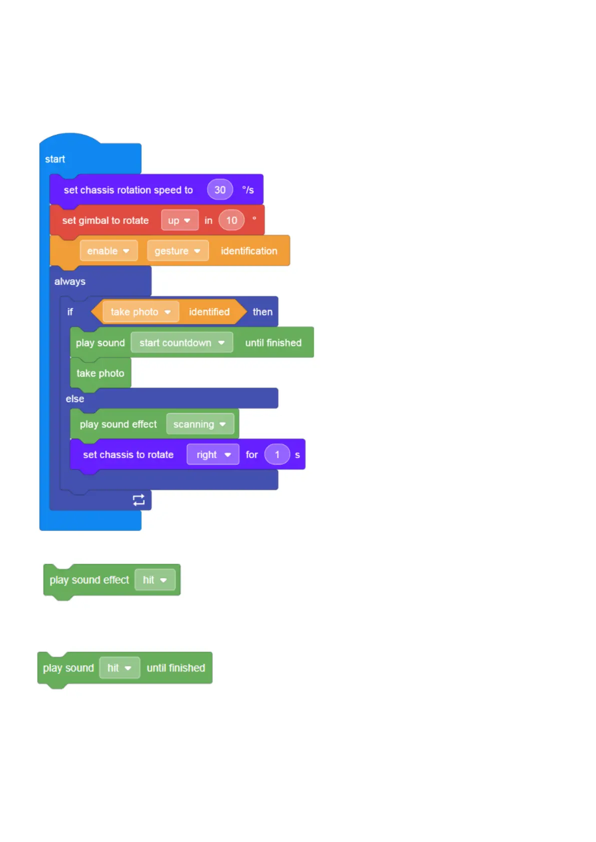 If it does not identify a “take photo” gesture, it will continue to rotate and search for the gesture while playing