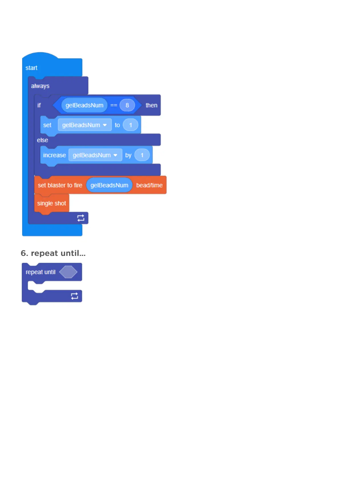 This will control the robot to gradually increase the number of shots (with the maximum shots being "8