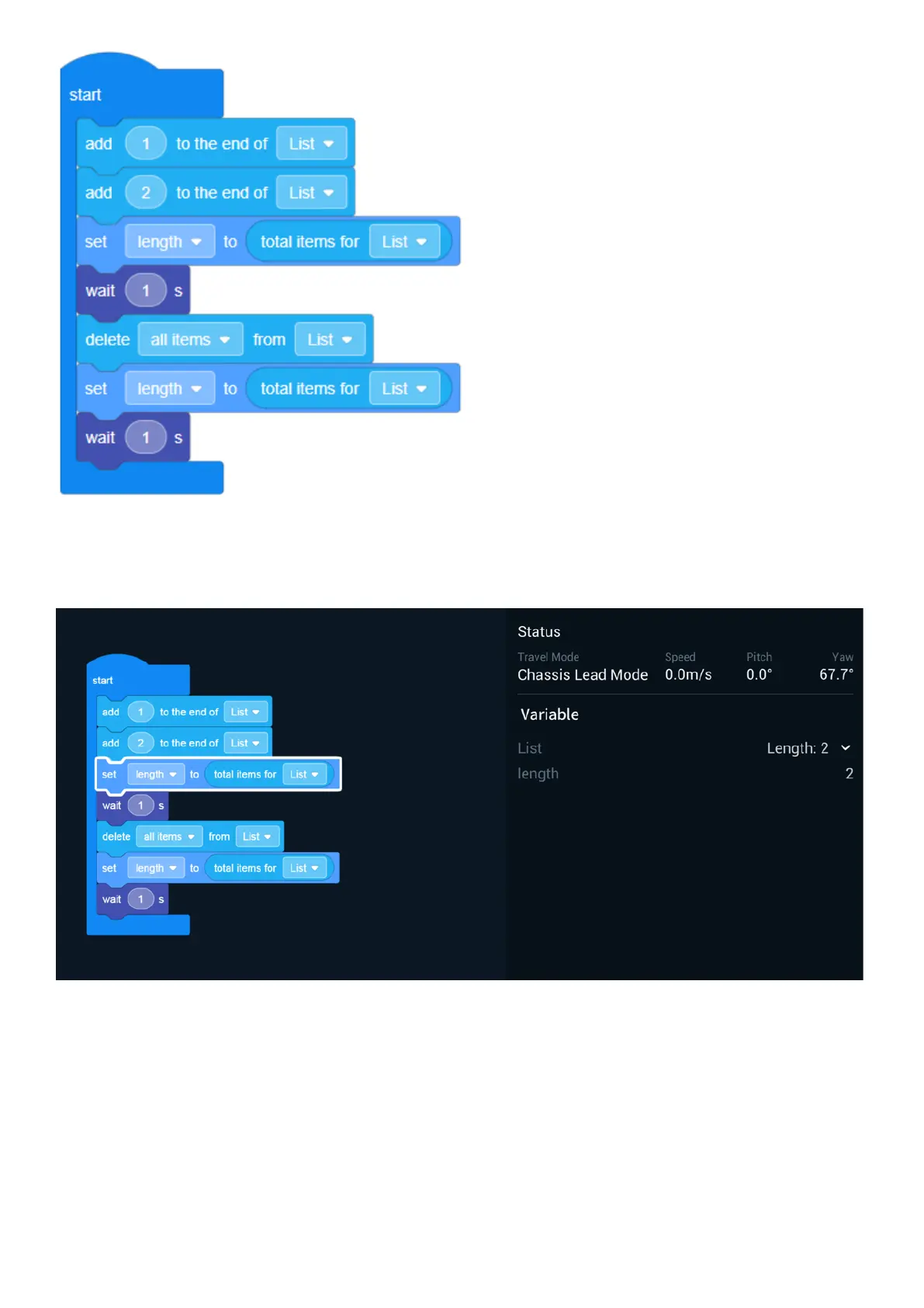You can check value changes using the FPV window. The length value starts at 2 and becomes 0 after deleting