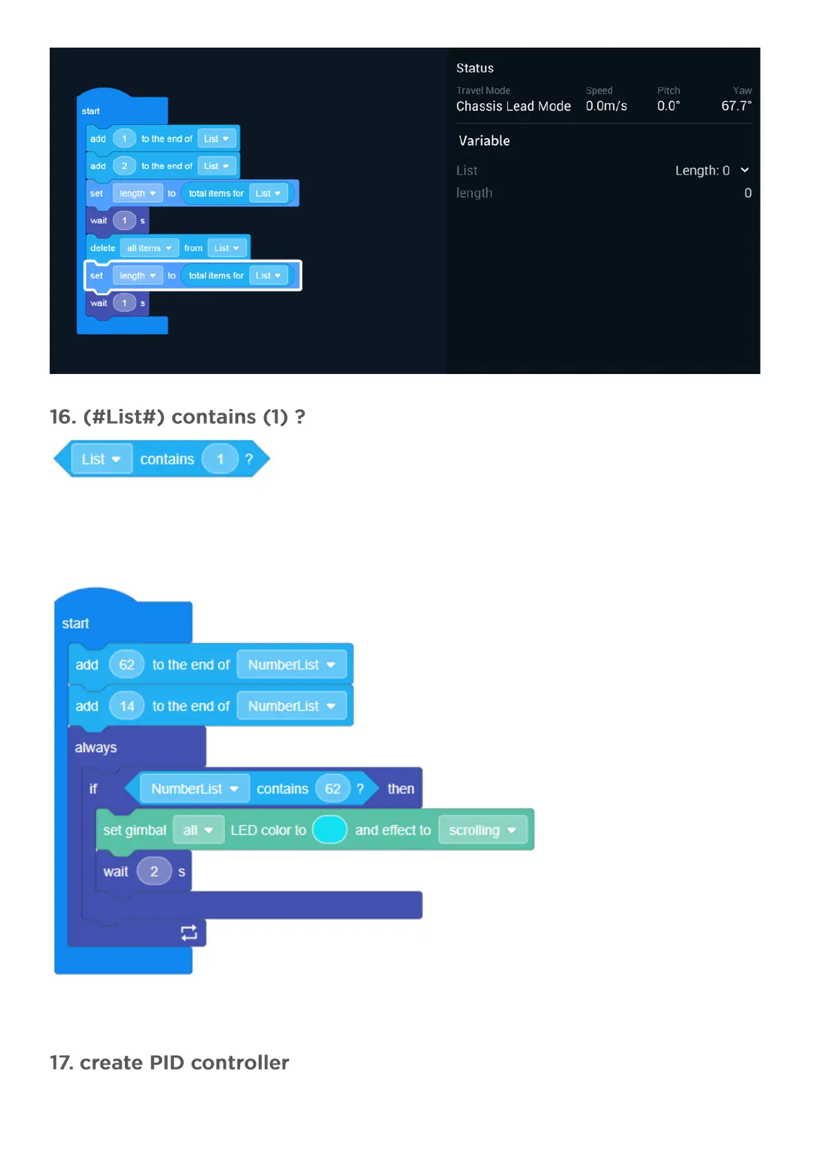 If there is a specific value set for a list, the gimbal LEDs will start to scroll.