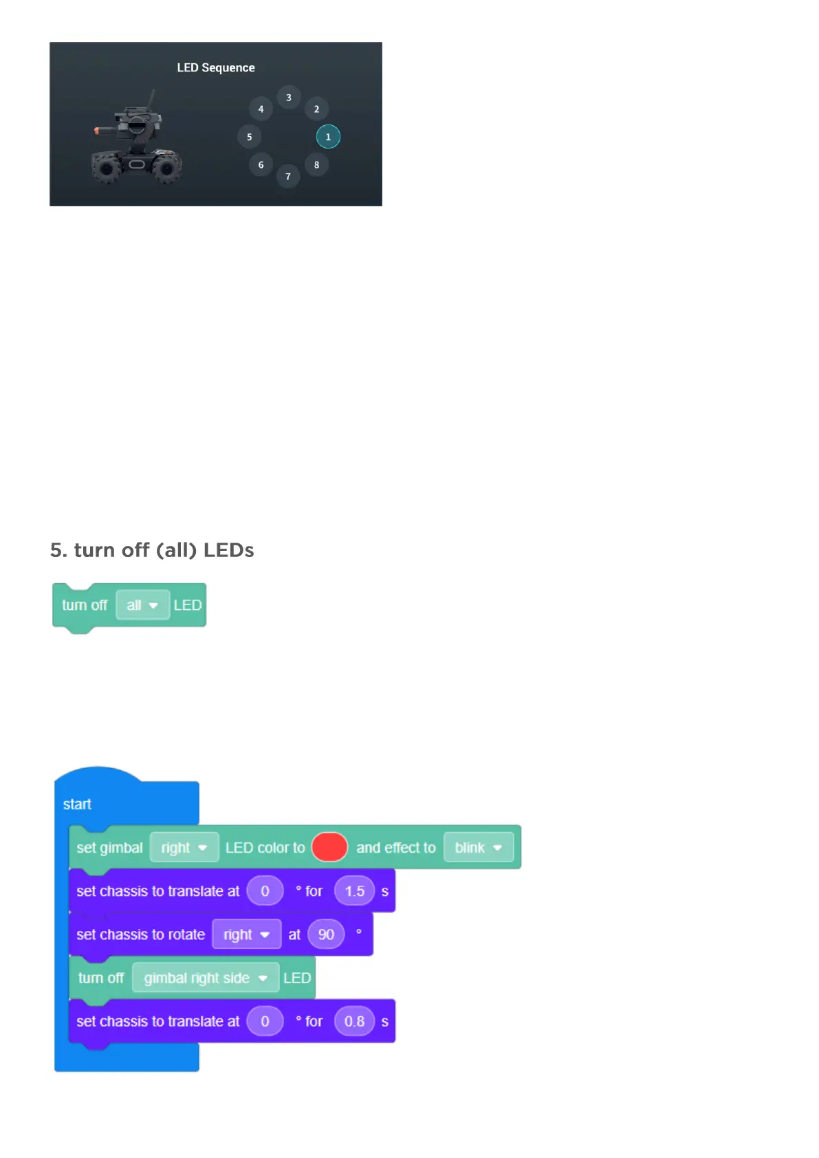 This will set the robot to switch on LEDs on the right side of the gimbal before turning right; after the turn is