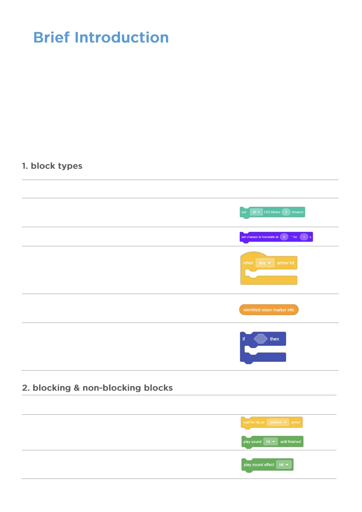 robots or basic programming, this guide includes instructions and example programs for each block to help