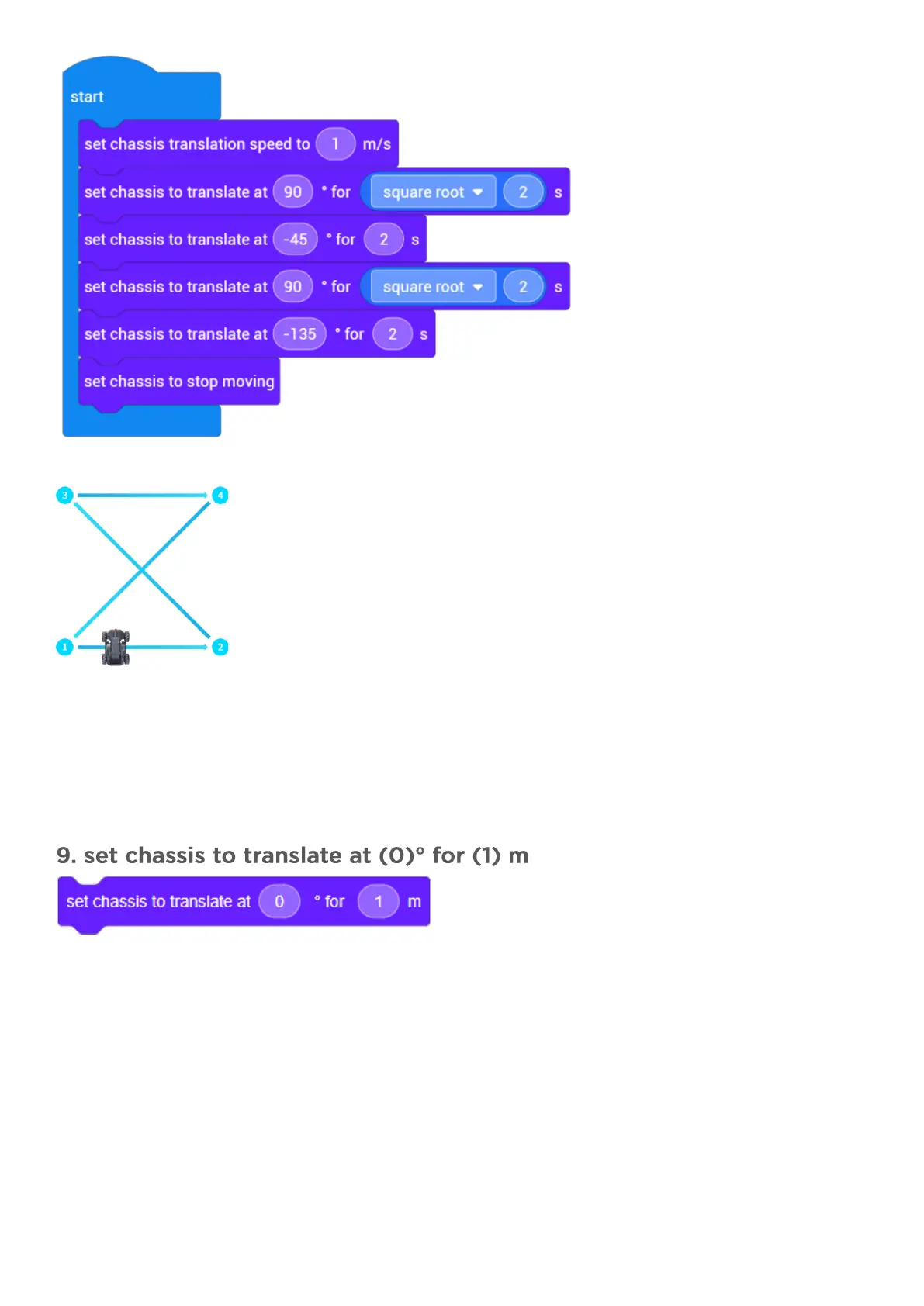 This will control the robot to translate forward, backward, left and right in a cross-shaped sequence.