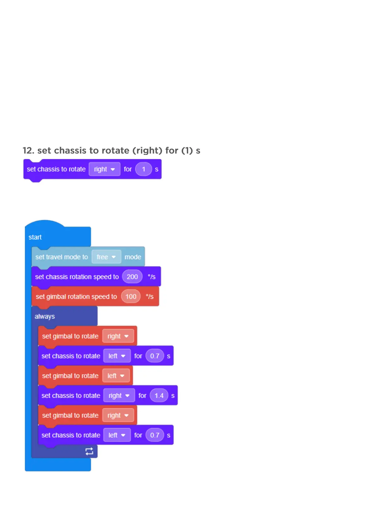 3) This block will set the chassis to rotate constantly in a specified direction until it receives a “set chassis to