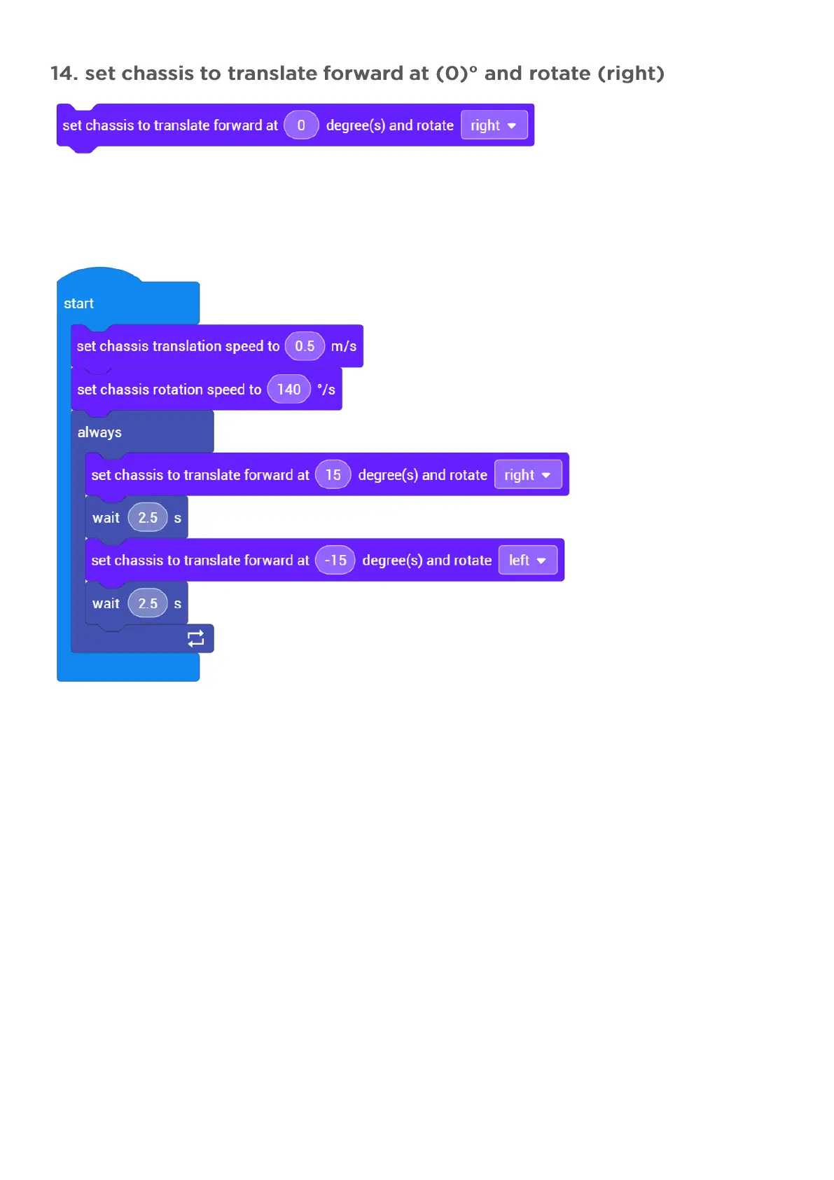 The “set the chassis to rotate” block is not available in Gimbal Lead Mode; however, the “set the chassis to