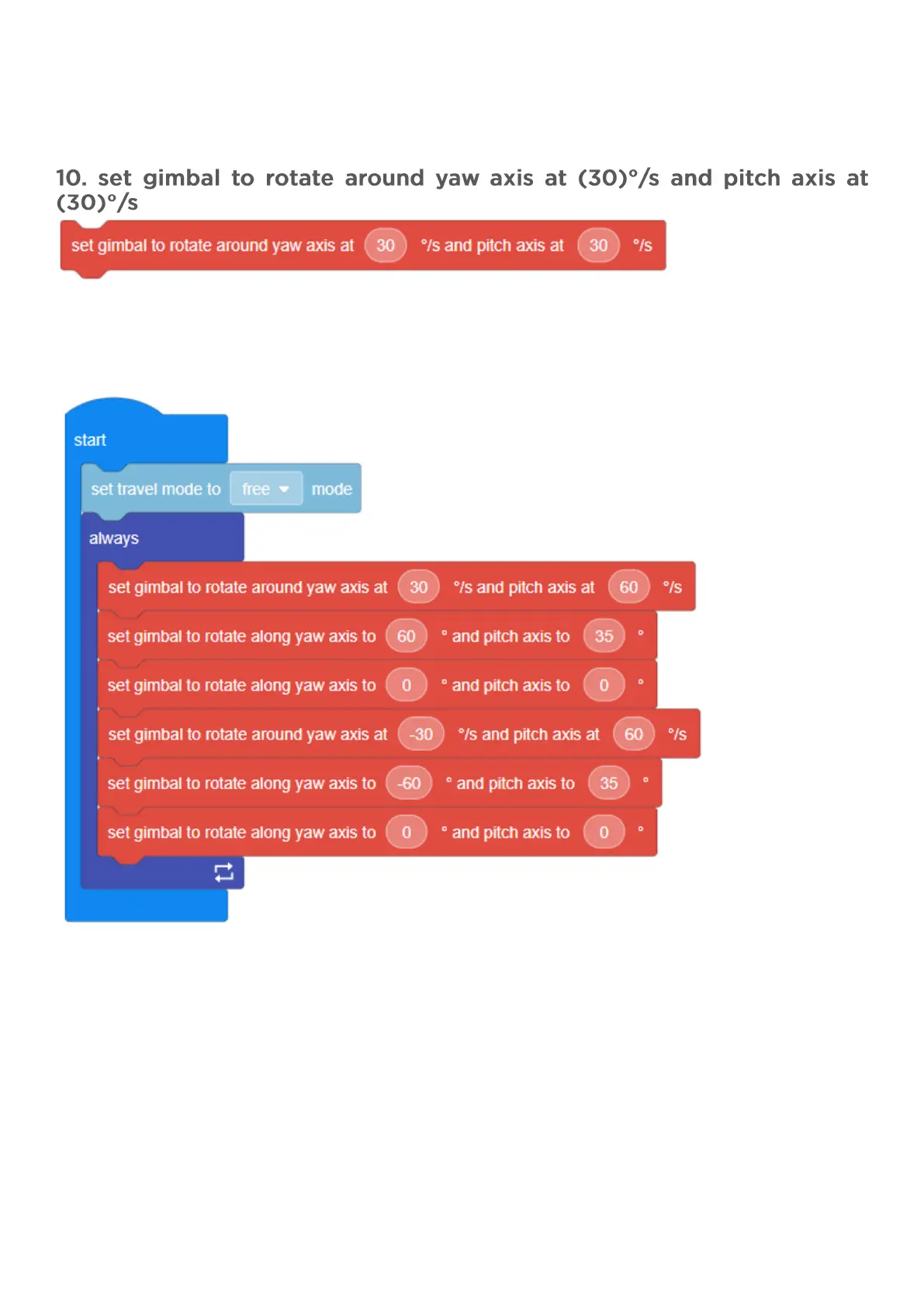 (1) Objective: Sets the gimbal to rotate on its yaw and pitch axis simultaneously at a specified rotation