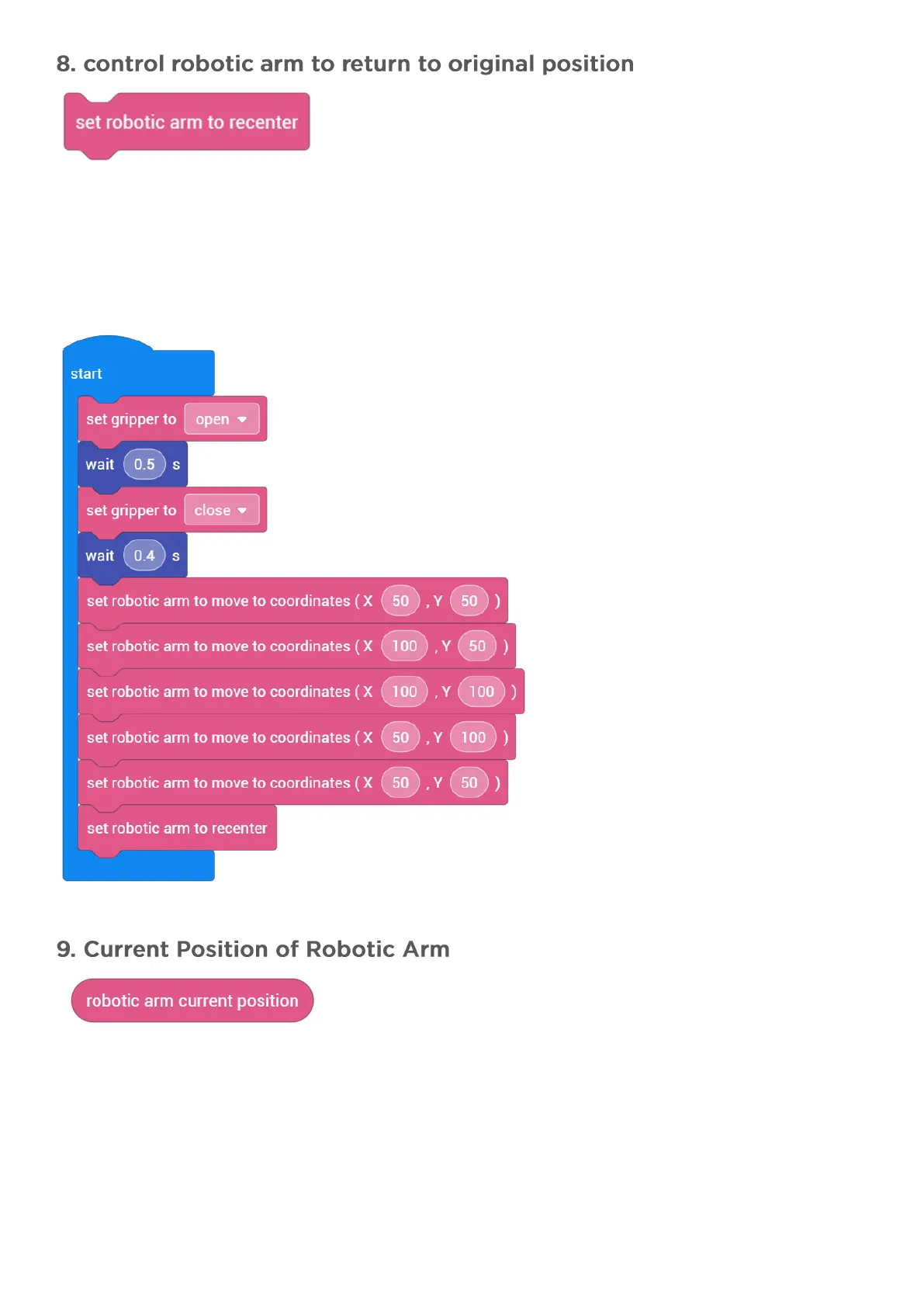 (1) Description: Obtain the current position of the robotic arm. The position parameter is (x(abscissa),